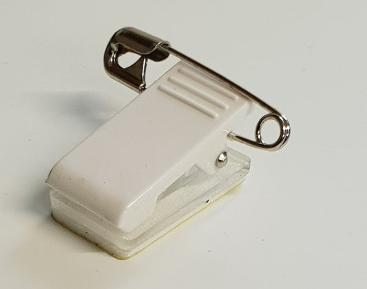 Badge Pins Adhesive Plastic Clip White with Safety Pin and Adhesive 525SE